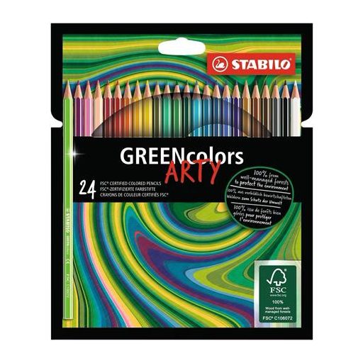 Színes ceruza készlet, hatszögletű, STABILO "GreenColors ARTY", 24 különböző szín