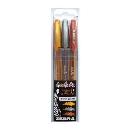 Zseléstoll készlet, 0,33 mm, kupakos, ZEBRA "Doodler'z Glitter", 3 különböző szín
