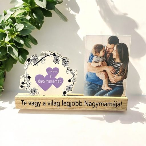 Idézetes fényképtartó, fa taplon.