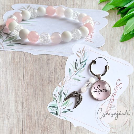A kulcstartóra szintén ezeket az ásványokat tettük kiegészítve egy angyalszárnnyal