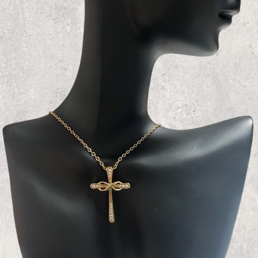 Antiallergén Kereszt nyaklánc apró kövekkel díszítve
