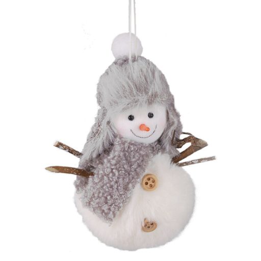 Textilből és plüssből készült karácsonyi dekoráció-plüss hóember szürke sállal és fülvédős sapkával. Ideális belső terek karácsonyi díszítéséhez.