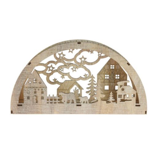 Karácsonyi dekoráció LED világítással (félkör ívben házikók)