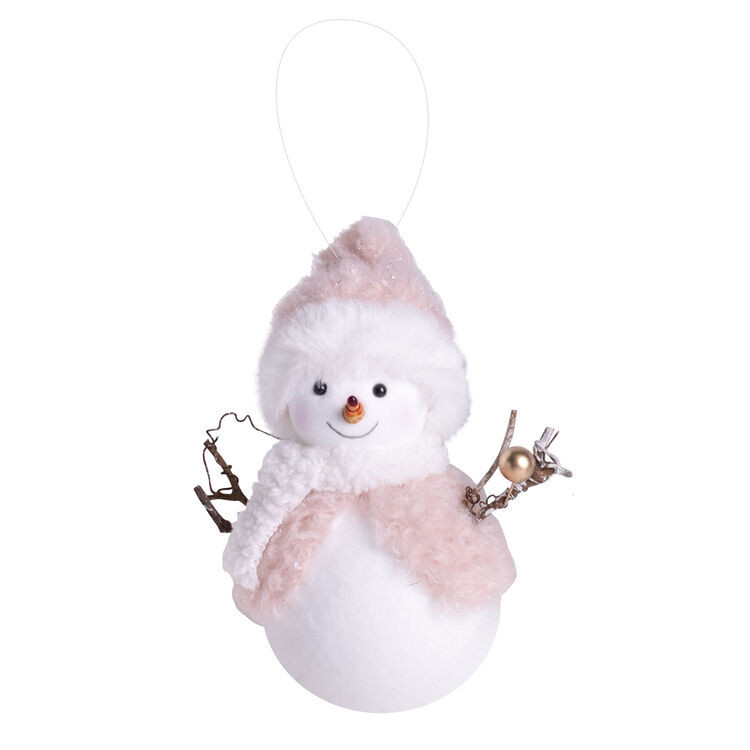 Karácsonyi dekoráció (hóember rózsaszín mellényben, 18 cm)