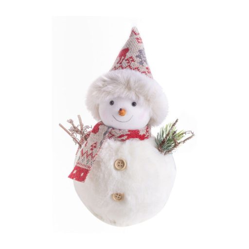 Karácsonyi dekoráció (hóember piros sállal-sapkával, 22 cm)
