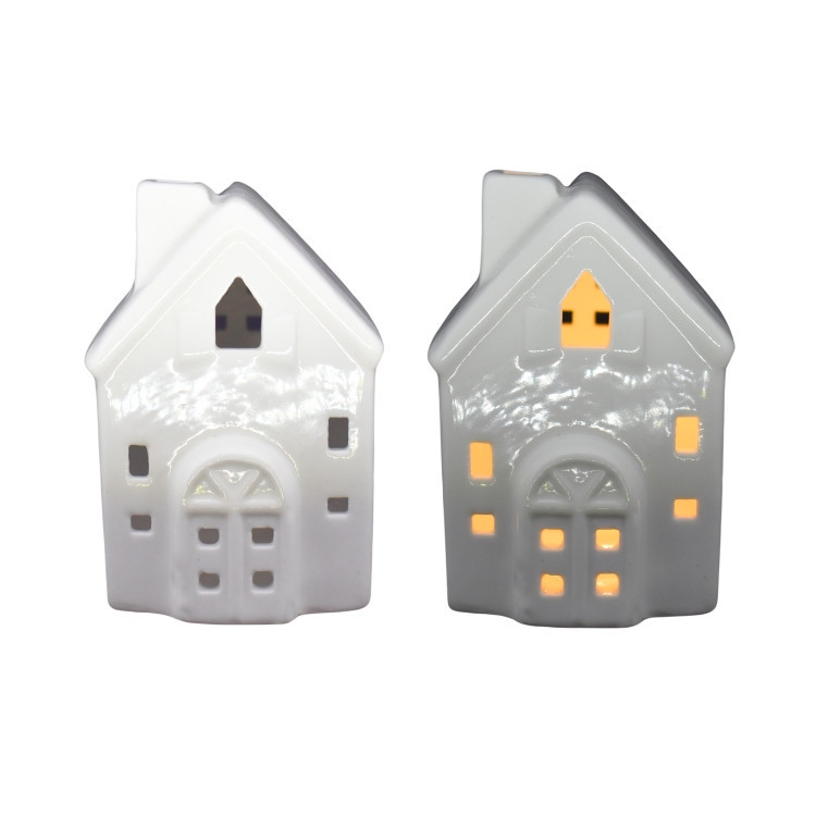 Karácsonyi dekoráció porcelán ház LED világítással (ház)