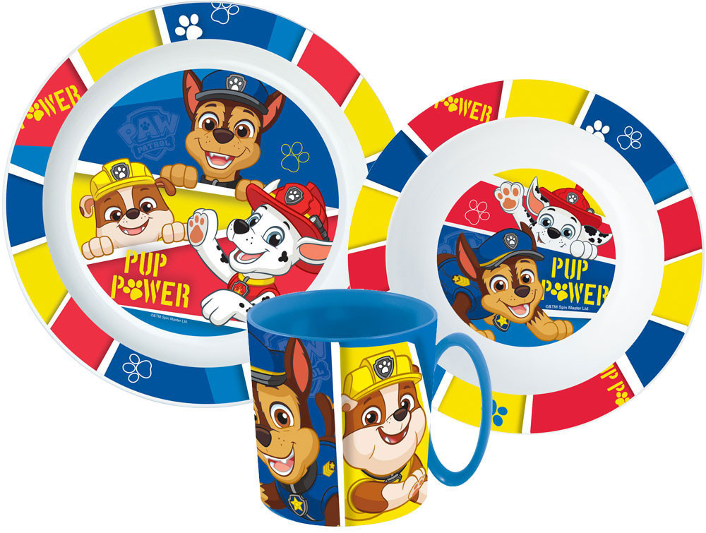 Mancs Őrjárat Pup Power étkészlet, micro műanyag szett bögrével 350 ml