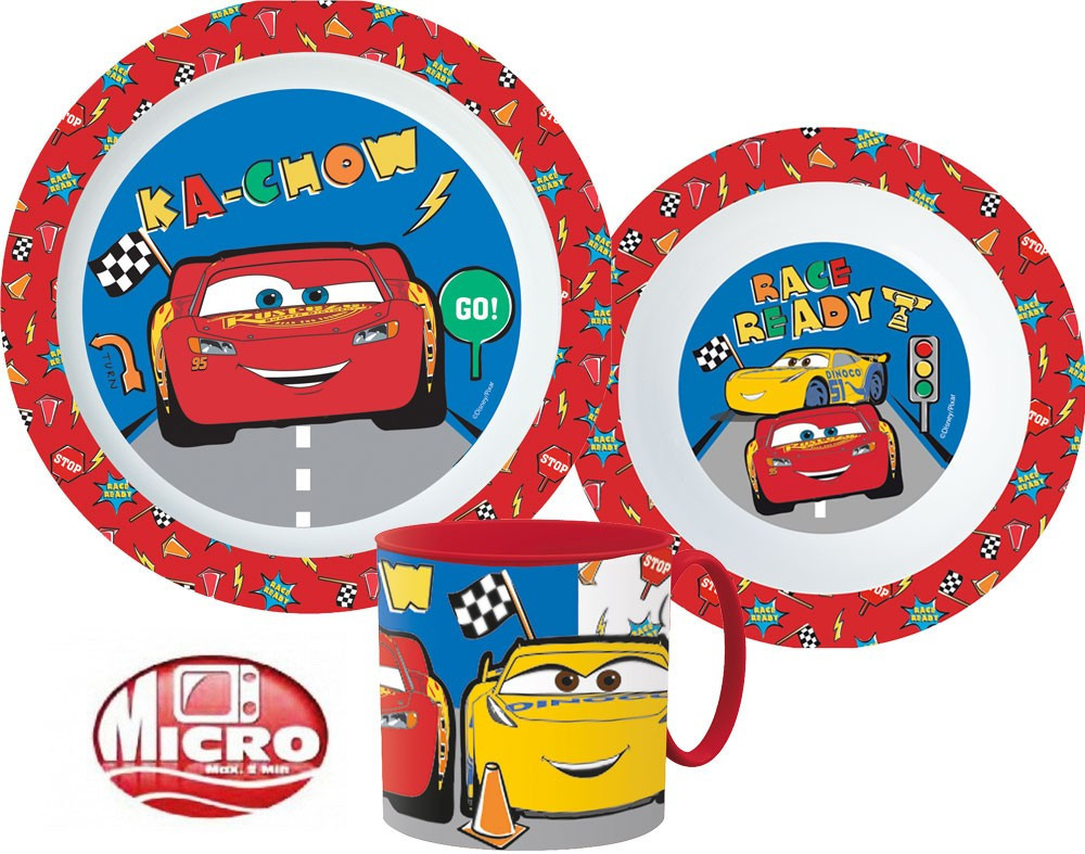 Disney Verdák Lets Race étkészlet, micro műanyag szett bögrével 265 ml