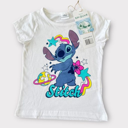 Egyenes szabású, kerek nyakkivágású, elején vidám és színes Stitch mintával.