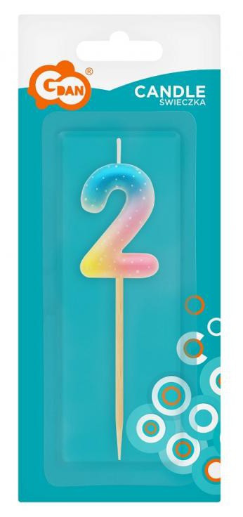 Színes mini 2-es Pastel Ombre számgyertya, tortagyertya