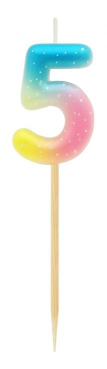 Színes mini 5-ös Pastel Ombre számgyertya, tortagyertya