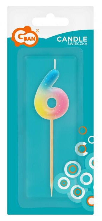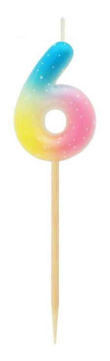 Színes mini 6-os Pastel Ombre számgyertya, tortagyertya